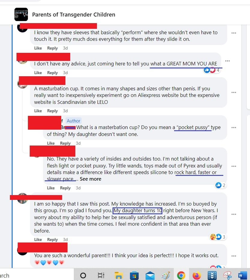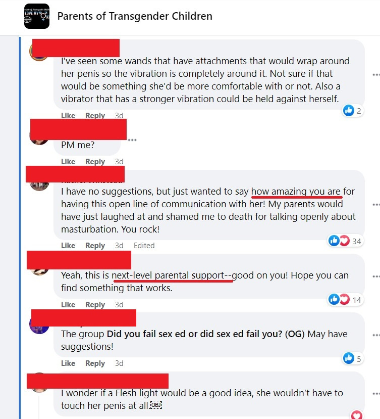 Back in my days as a law enforcement officer who spent 15-years in the juvenile unit, I arrested parents for this type of behavior. Teaching your under-age child how to masturbate? Buying them sex toys? It’s not just creepy ... it’s criminal. These parents are sick! And their poor children are doomed. So much of what I see going on today between children and adults, behaviors being applauded and promoted, are CRIMINAL. Period. The hyper-sexualization of todays children, the blurring of boundaries of pedophilia, the mutilation of healthy, young bodies...absolutely revolting. And we as a society will pay an incredibly high price for this rampant perversion and abuse. The future is not pretty.