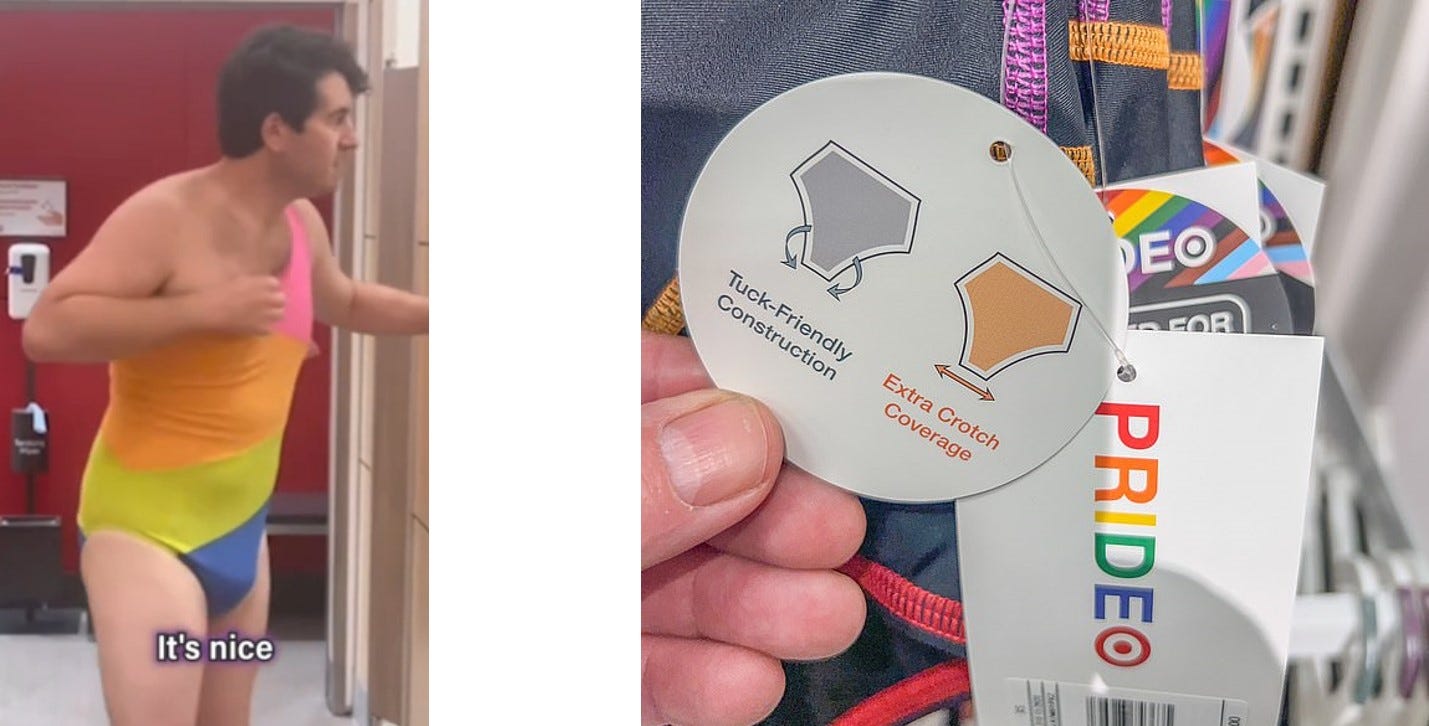 It seems that in honour of Fetish Pride Month, Target have marketed a range of something called “tuck friendly swimwear”.